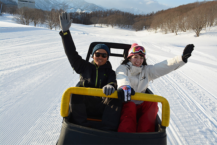 In addition to skiing and snowboarding, ski resorts in the winter offer additional activities such as snow rafting and snowmobiling. The Activity Area extending through the vast snowfield and forest is like a winter wonderland theme park. When visiting us in the snowy mountains, you can enjoy a whole range of winter activities to the fullest! Here’s an introduction to the exciting activities offered at the Minakami Kogen Ski Resort.