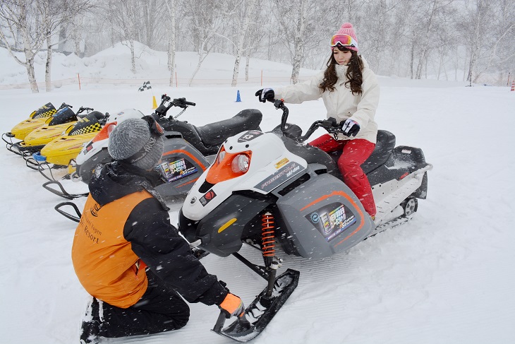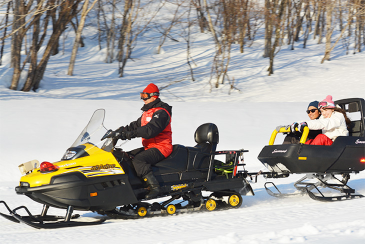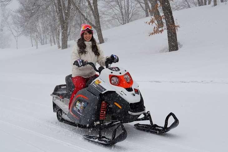 Snowmobiles are small vehicles used for transportation on snow-covered ground. And you can take one of these for a ride. No special license is needed, and beginners are also welcome to try. Cruise around the private course, or speed up and breeze through the snow once you get the hang of it.
