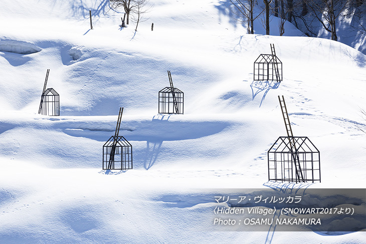 After filling up with the Yukimi Gozen lunch and being warmed right to the heart, we head to a snow and art event. Echigo-Tsumari has been attracting attention since 2000, hosting an event called "Echigo Tsumari Art Field" that draws together bountiful local nature, culture and modern artworks in harmony. The center of its activities, Echigo-Tsumari Satoyama Museum of Contemporary Art Kinare, exhibits an array of snow-related and other objets d'art. Until March 11, the courtyard will host "Snow Play Expo," with unique snow and winter-themed artworks like "Kotatsu (heated low tables in Japan) Car Circuit," which looks like a combination of kotatsu and bicycles, and "digital snowballing" with projection mapping. The event will no doubt entertain visitors of all ages.