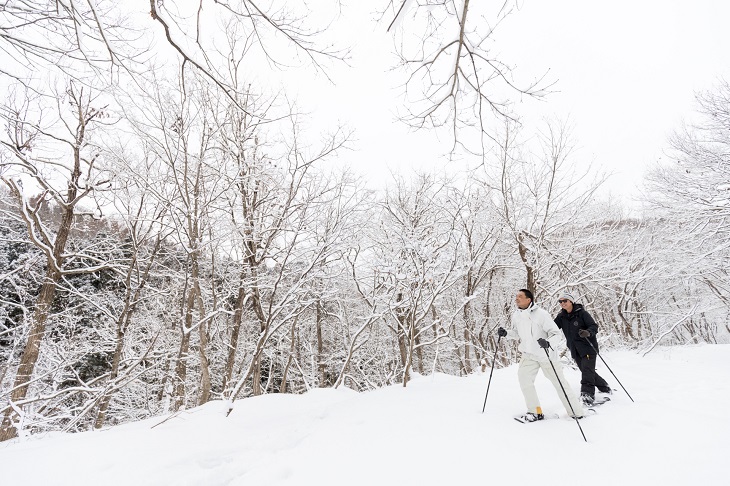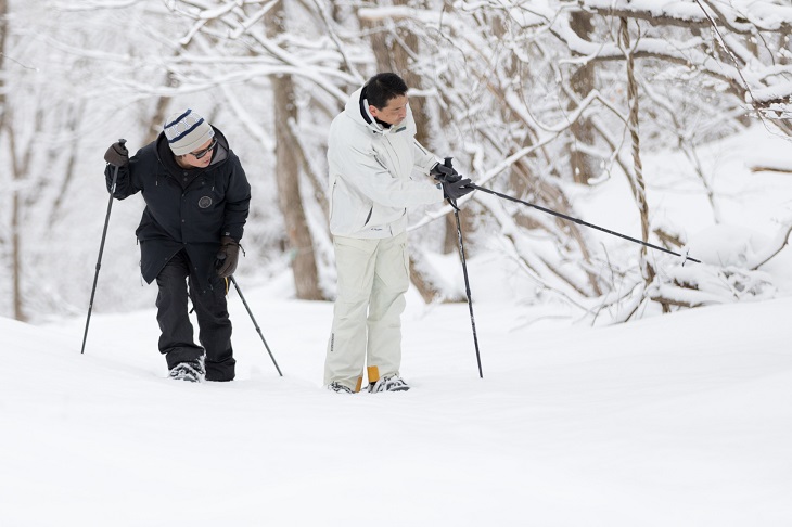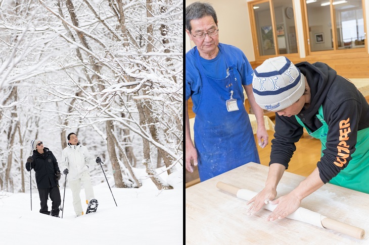 Daigenta is a very popular area about 15 minutes by car from Echigo Yuzawa Station, with many opportunities to casually enjoy the area's bountiful nature and camping in summer. In the winter it transforms into a serene, silver-white world laden with lots of snow, perfect for snowshoeing. There is a tour where you can easily enjoy snowshoeing and soba (buckwheat noodle) making, using local buckwheat flour from Yuzawa!
