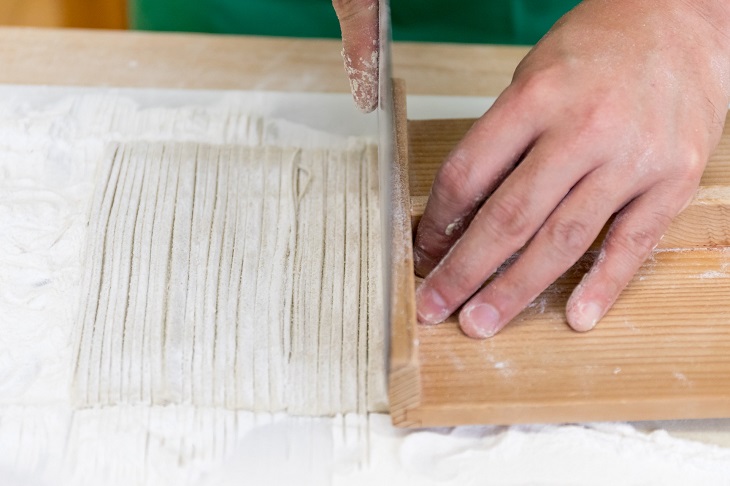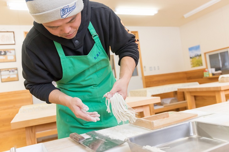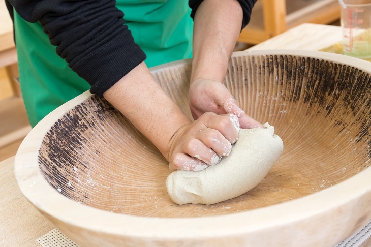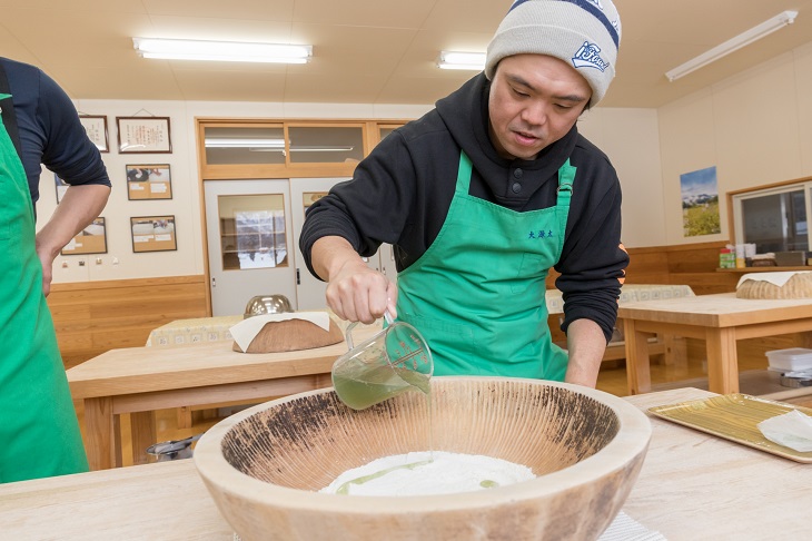 We mixed the buckwheat flour using seaweed, and kneaded the flour to make dough.