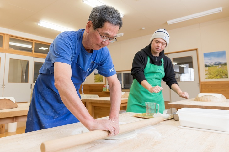 We then flattened the round buckwheat dough with a rolling pin until it got thin and large. We got some guidance, but there's definitely an art to it.