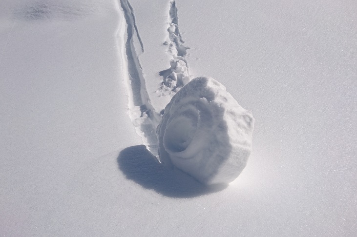 Walking through a huge snow field feels absolutely wonderful. Looking back, gave us a magnificent view of Mt. Daigenta, also known as the Matterhorn of Joetsu.