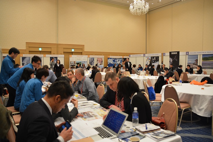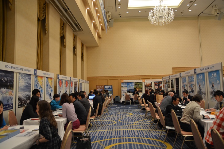 On the day after the fun event in the previous evening, business meetings were conducted from morning in the Sapporo Prince Hotel International Convention Center. About 45 different tour companies in Hokkaido joined the event and interviewed foreign guests in a 15 minute meeting for each.