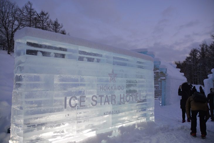 In the evening, after business meetings, participants took a bus ride to "Ice Star Hotel" that locates in Makomanai, Sapporo, for observation. A fantasy building that is made of ice and snow just rises up in a golf course property only in winter. You can enjoy cuisines that are made of local food materials in the club house and also can experience activities like a snowmobile, banana boat, and snow tube to speed off on the snow.