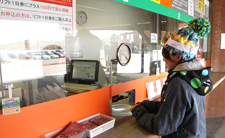 搭乘纜車需要購買票券(纜車票)。票券可以在中心大樓內或售票處的窗口購買。通常有全天票、半天票(只在上午或下午使用)以及單次搭乘的票券等各種選擇,所以在購買時可以根據你計劃滑行的時間來考慮。