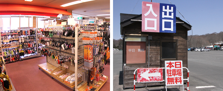 有些中心大樓內還設有售賣紀念品的商店,以及出售手套、護目鏡等滑雪用品的商店。此外,大多數滑雪場都有停車場,但停車費用因滑雪場而異,有些是隨時免費的,有些平日免費但週末要收費。