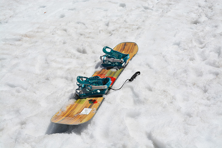 Snowboards are designed for easy sliding, so they're prone to slide on their own when placed on the snow. This is why you need to be careful when taking them off, putting them on and placing them down flat on the snow. Remember the precautions for handling snowboards.