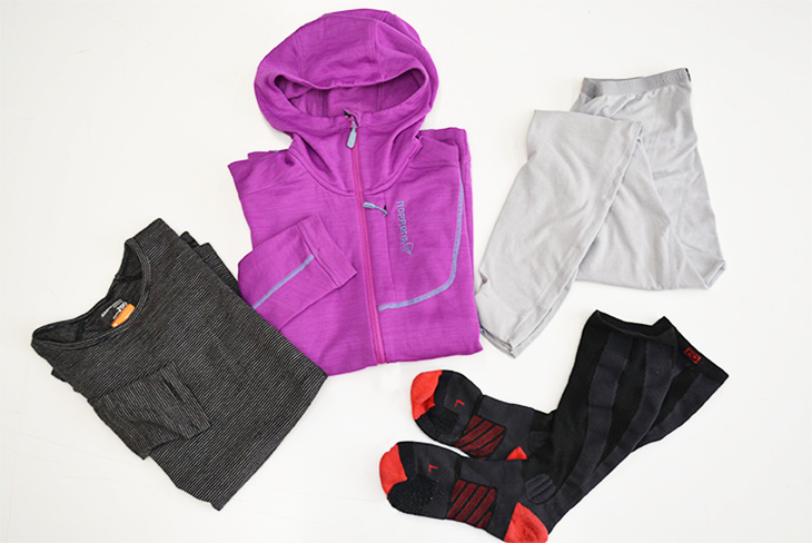 When at a ski resorts, you'll adjust your body temperature by what's under your skiwear. Examples include sweaters, fleece on innerwear, and thermal tights to warm your legs. Thick socks are also recommended. Once you get wet from sweat and snow, your body temperature falls and may trigger serious symptoms like hypothermia. Keep yourself comfortable with fast-drying, high-insulation clothing designed for use in alpine conditions.