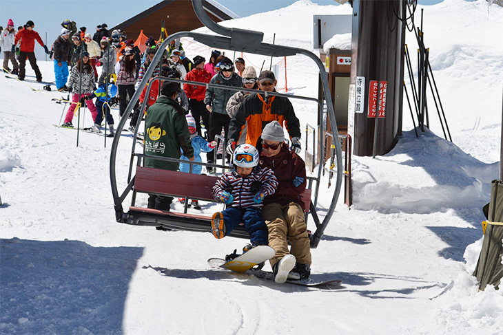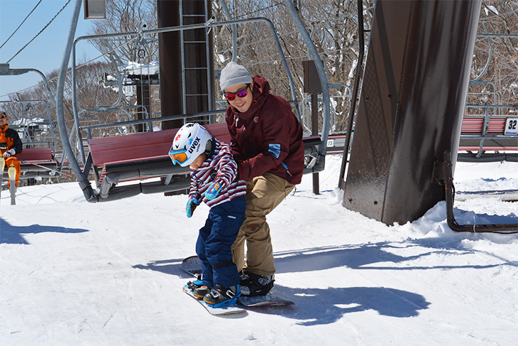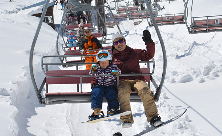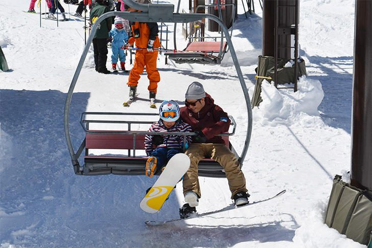 When getting on a lift, kids must be accompanied by a guardian who has a certain level of skiing or snowboarding skill. As the guardian, you must support them when getting on and off the lift, as this is where they have the highest chance of falling over. You'll need to teach them how to get on and off the lift in advance.