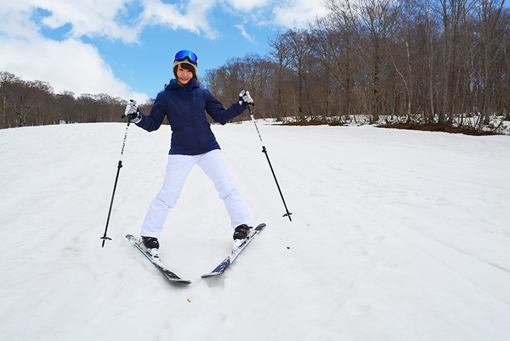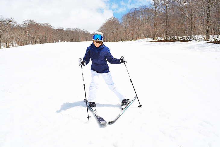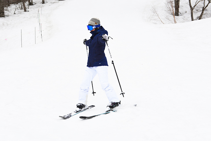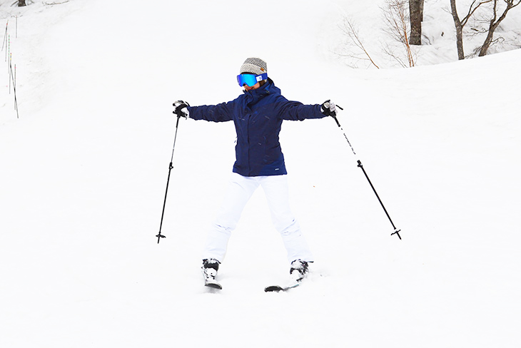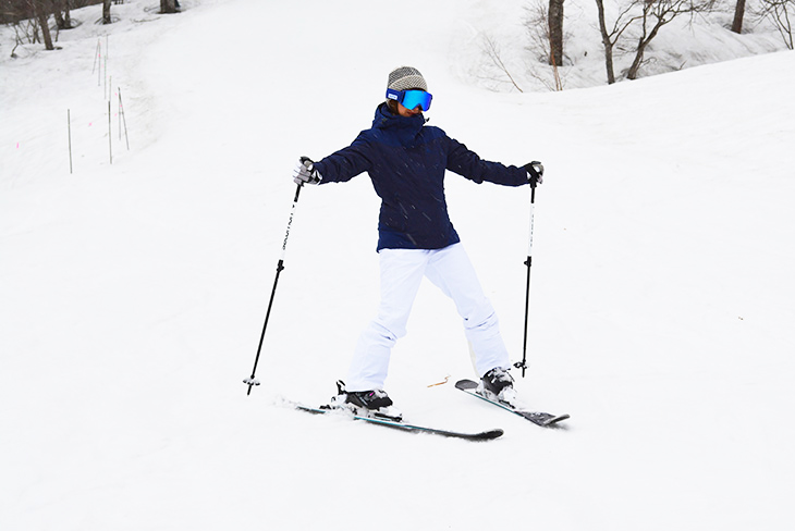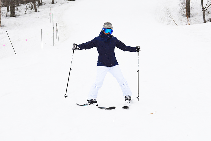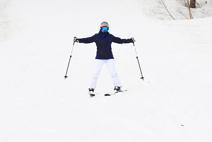 Likewise, aim your chest to the right to do the right turn. Keep your skis in a V-shape and move straight forward, then aim your chest to the right to do the right turn.