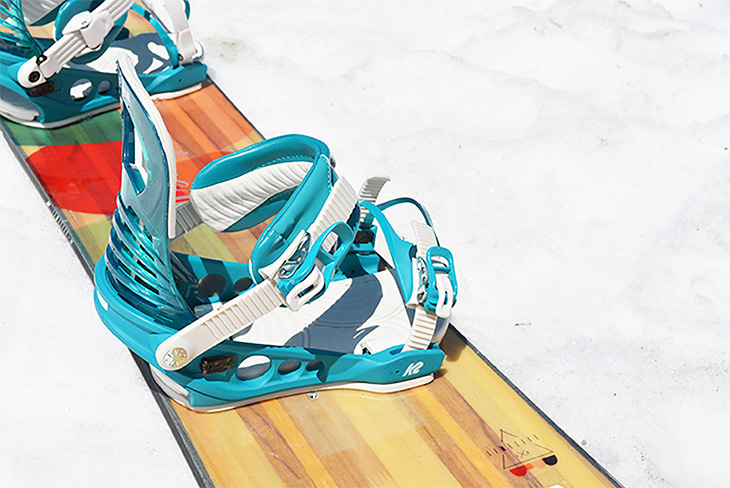 Bindings hold your boots firmly in place using two straps. A part called the ratchet is used to adjust the degree of tightness. The highback on the bindings supports the area from the ankle to the calf.