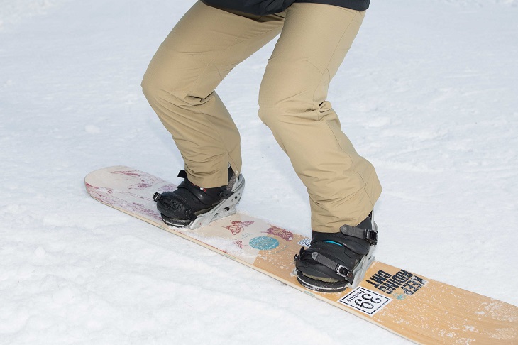 Once you're used to the sensation of snowboarding with one foot fixed in the binding, try attaching the other foot as well. You can try jumping on the spot, or practice turning with a jump to become familiar to the feeling of having both feet fixed in place.