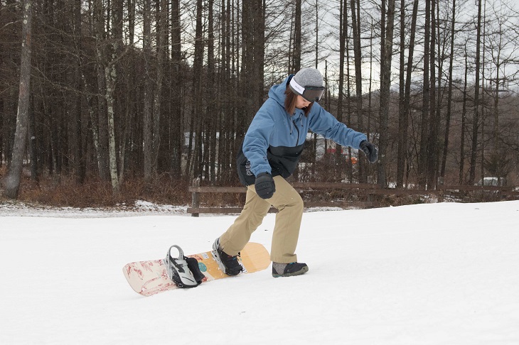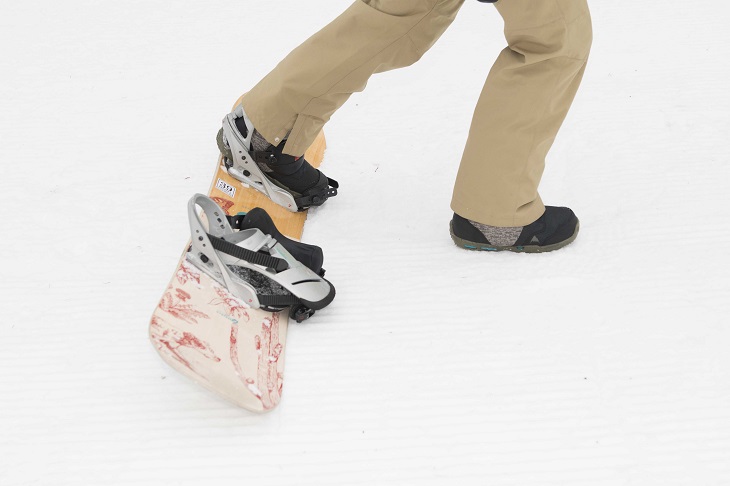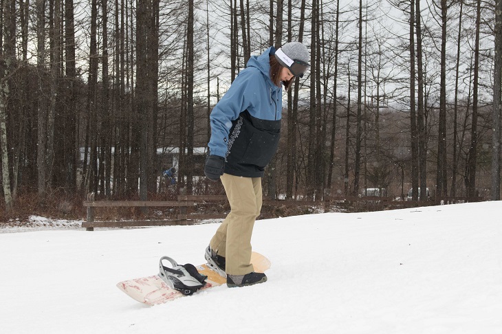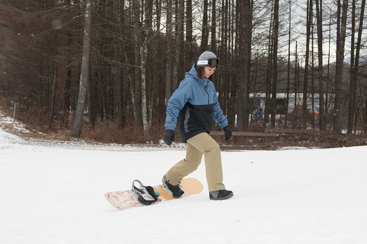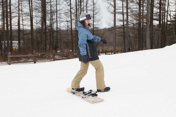 When practicing snowboarding or approaching the lift platform etc., you might need to climb up a slight slope. Let's learn how to climb up a slope with one foot fixed to the snowboard. If you just learn the important points such as where to point the board and how to move your feet, climbing slopes will be easy.