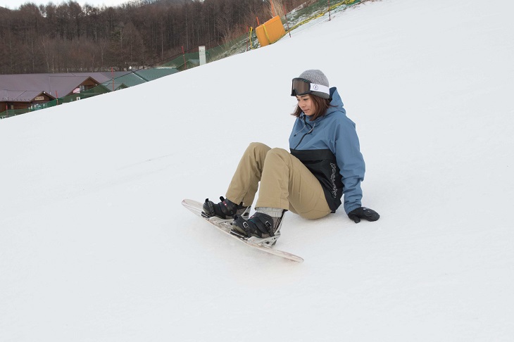 The ankles are also bent and flexed when adjusting the edge angle of the toe side. Hold up and down the edge's contact with the slope while imagining pulling your heels up and down.