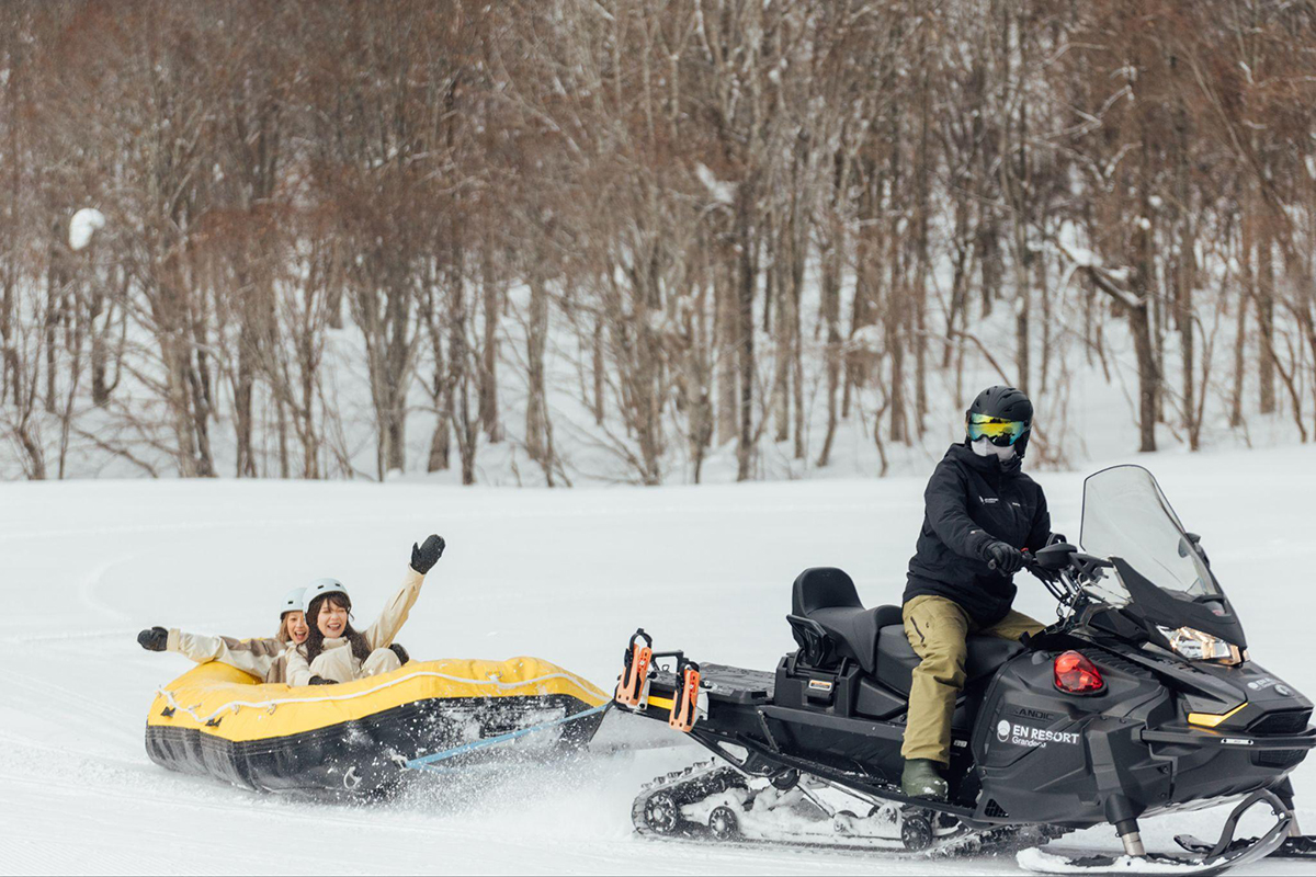 像是「雪上摩托車泛舟體驗」,就是讓雪上摩托車拉著你在雪地上狂飆!