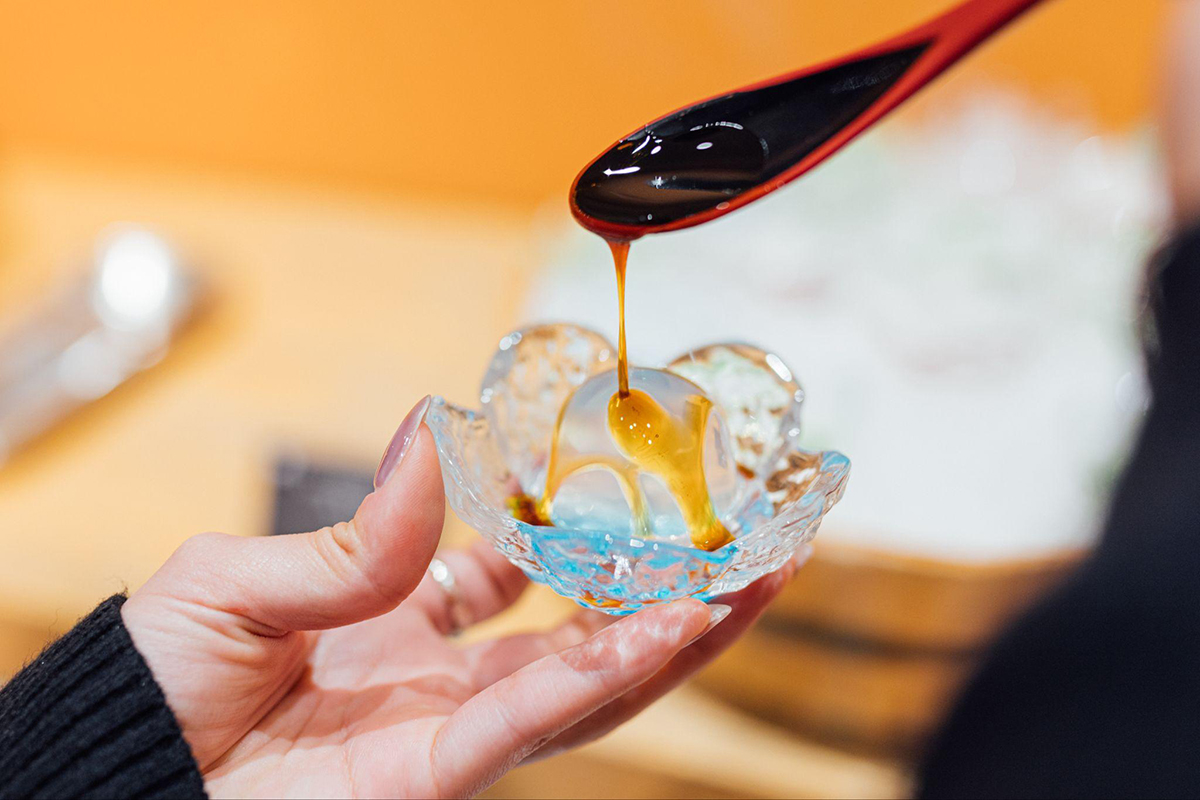 Apparently, the whole idea came from this famous spring nearby called "Onogawa." It's one of Japan's top 100 natural waters. The chefs wanted people to taste how amazing the water from Urabandai is, so they whipped up this dessert to really capture its clean, pure flavor.