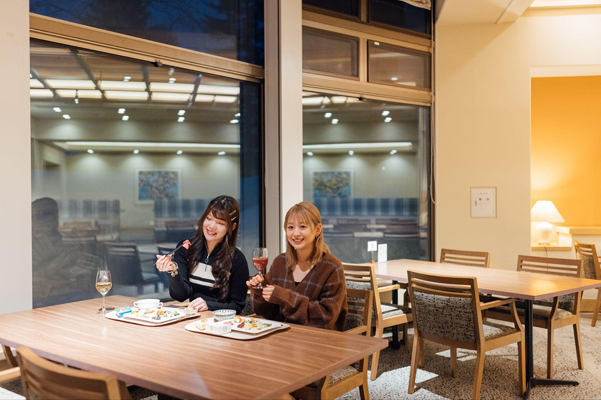 The onsen here, "Buna no Yu," is the real deal. It has a sauna and a cold bath, letting you totally find your zen. And the outdoor bath with a view of the snow is just incredible. We got to chatting and couldn't help but take a super long bath.