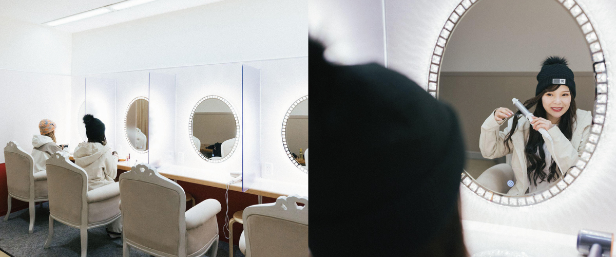 Need a touch-up after skiing? Grandeco's got you covered. The ladies' powder room is fully stocked with a Dyson hair dryer, a curling wand, and a flat iron.