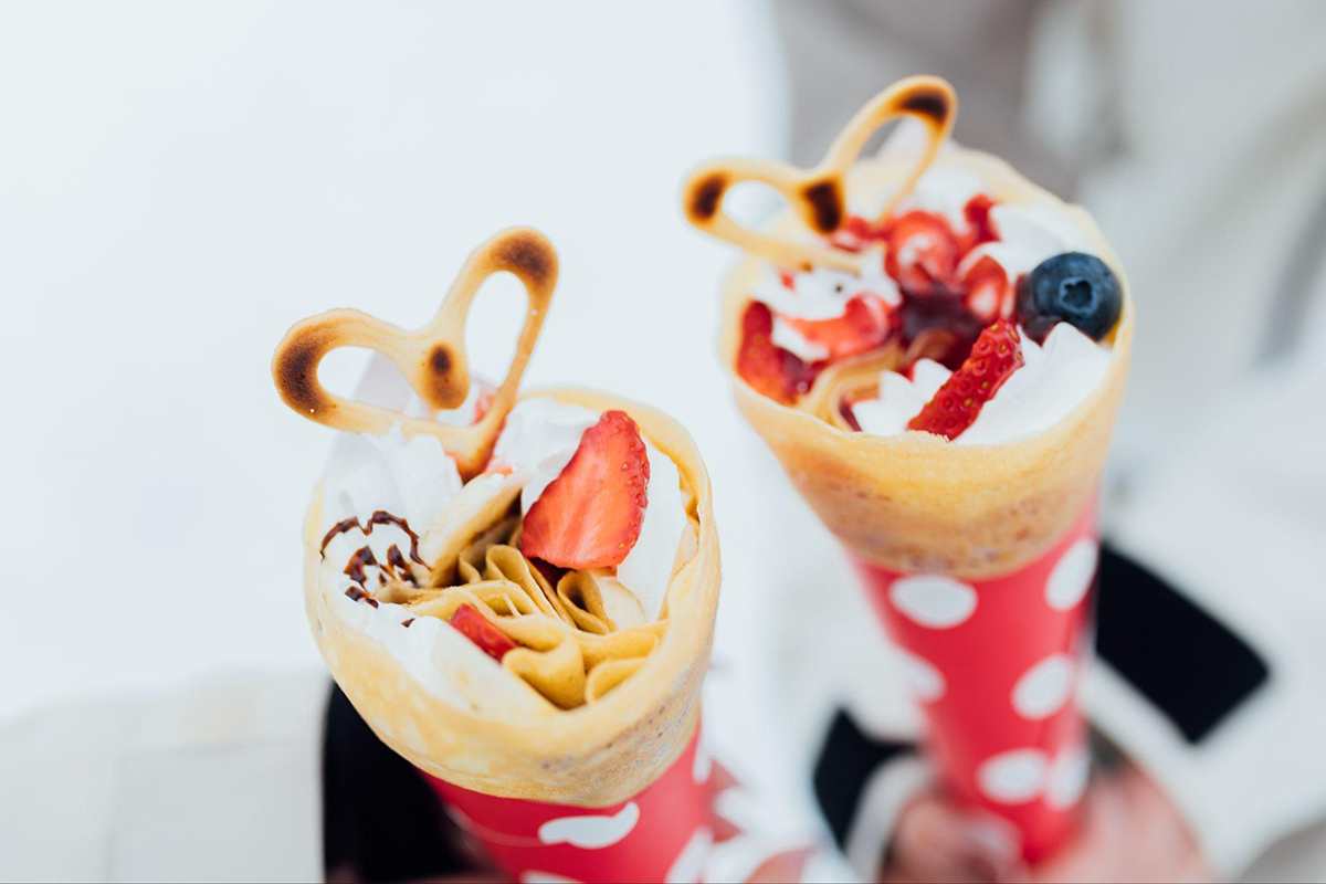 The "Deco Crepes" are the real deal; they're made with fresh, carefully selected fruit, none of that frozen stuff. It's such a perfect indulgence with all that fresh fruit and fluffy whipped cream.