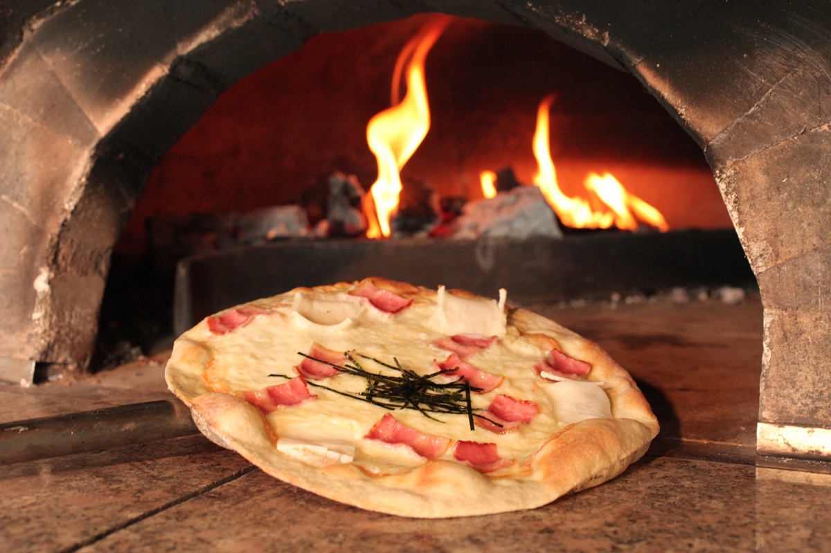 It's a real treat to enjoy freshly baked stone-baked pizza at the ski resort.