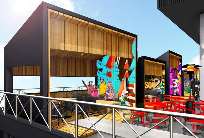 The snow park is fully equipped with slope-style features, offering items that match various skill l