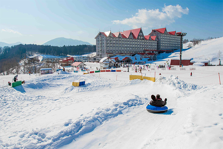 One of the most famous ski resorts in Japan with its enormous scale, Hakuba Happo One was also home to countless dramas at the Nagano Olympics. Based at the foot of Mt. Karamatsu (2,196m), the resort hosts a variety of intermediate to advanced runs. You'll be in heaven as you tackle courses ranging from the tough mogul slope at the top of the ski piste, to the long run that descends 1,000 vertical meters.