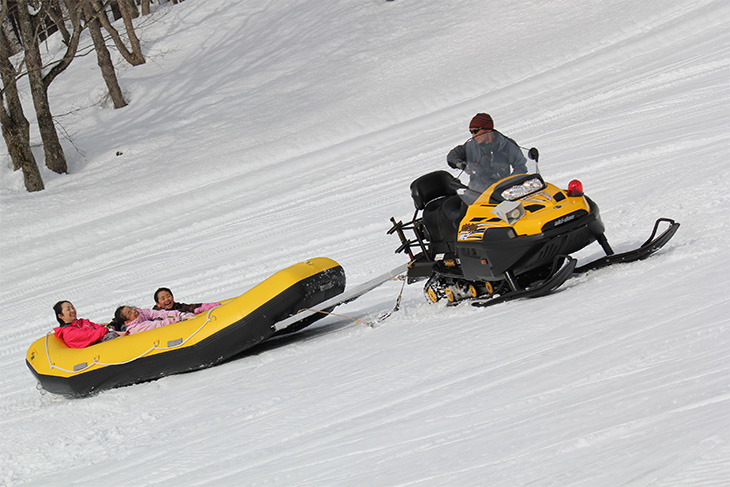 Even if you don't ski or snowboard, there are plenty of activities for you to enjoy. All nine ski resorts have sledding areas, where you can zoom downhill on a sled or just play in snow, to thoroughly immerse yourself in experiences unique to snowy mountains. Some resorts also have special sleds with steering controls. There are also many other ways for you to have some winter fun, including snow rafting and snowshoeing.