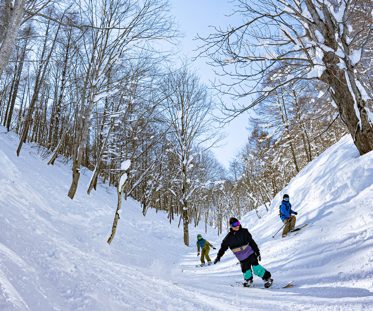 Being a ski resort with more tree runs than anywhere else in Japan, the tree runs are the life of the Madarao Kogen Ski Resort. The long banks created to utilize the original shape of the gorge attracts lots of fans, being challenging as well as enjoyable. Known as "Madapow", the deep powder snow during the high season is so light and fluffy and enjoyable in every way.