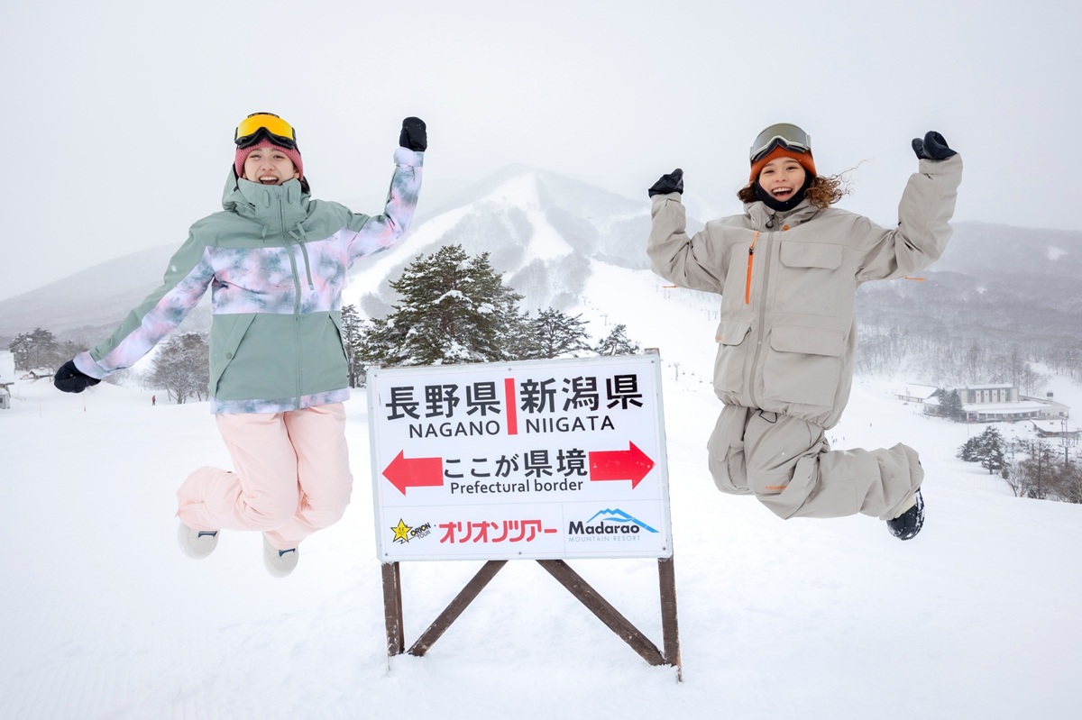 在眾多滑雪場的選擇中,就算同行朋友的程度不同,也會常常想「最好是大家都能享受的滑雪場」,或者「大家都是第一次挑戰單板滑雪」。因此常常難以決定要去哪裡。不過,能夠廣泛滿足這些條件、並且在奧利恩旅遊的排行榜中始終位居前列的,就是位於長野縣與新潟縣交界處的斑尾高原滑雪場。另外,斑尾高原滑雪場資訊中心附近的「長野縣與新潟縣交界看板」,也是非常推薦的打卡點!絕對是值得留作斑尾高原回憶的拍照景點。