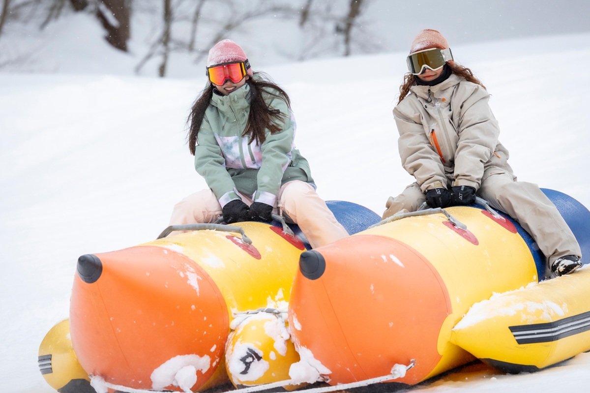 此外,位於斑尾山北坡的Tangram滑雪馬戲團也能使用共通纜車票,任何人都能直接滑行前往。Tangram不僅能滑雪,雪上活動也非常豐富,和朋友一起盡情享樂再適合不過。