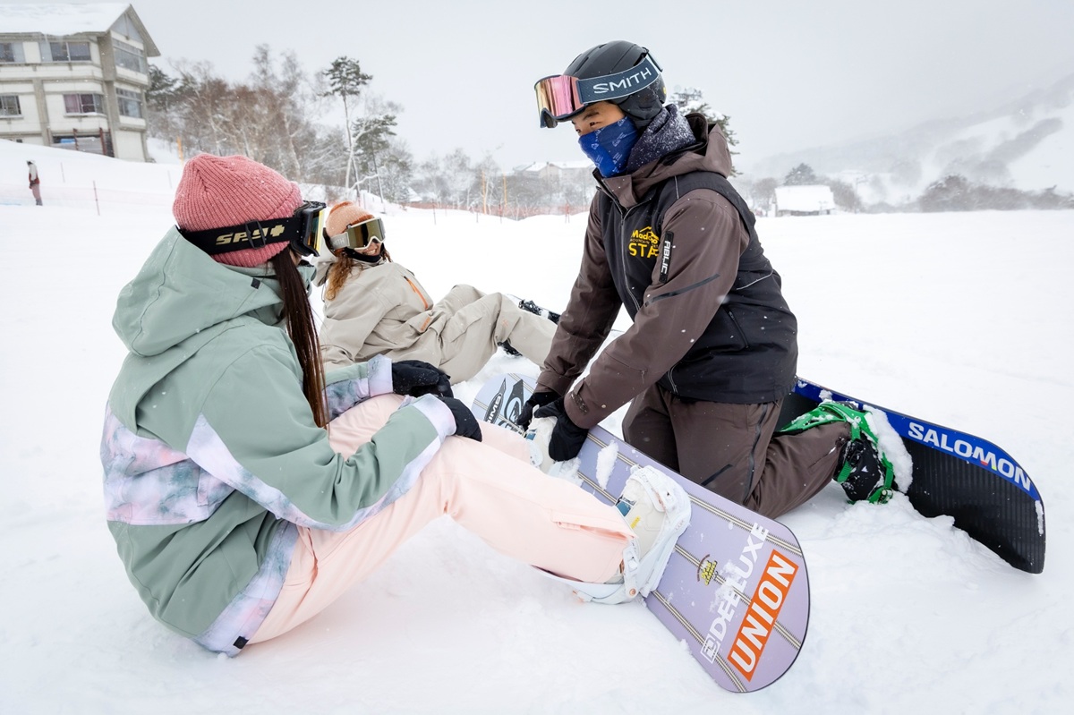 接著會從單腳滑行等動作開始,讓學員在熟悉滑雪板感覺的同時學習基本操作。