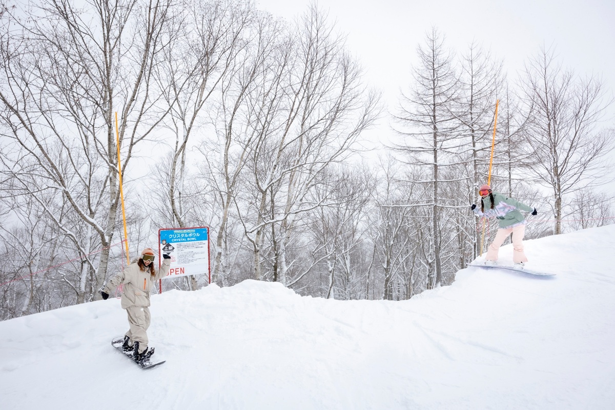 「天空景觀雪道」是一條穿越夢幻林間的初級雪道,坡度變化適中,可以悠閒地享受滑行樂趣。