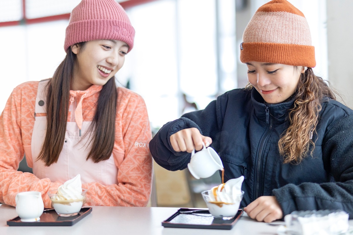 休息室外面是露台,冬季覆滿白雪,但若天氣晴朗能看到野尻湖與妙高山,這裡就是絕佳的拍照景點。換個不同角度取景,和朋友留下難忘合影吧!