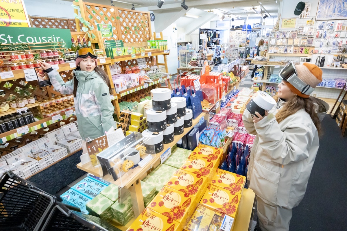 使用休憩廳後,也推薦順道去斑尾高原飯店內的商店逛逛。這裡販售飲料、零食以及各種滑雪用品,伴手禮的種類更是斑尾高原中最齊全的。與休憩廳一樣,即使不是住宿客人也能使用,還設有專門的外來入口,因此在這裡購買伴手禮相當方便。