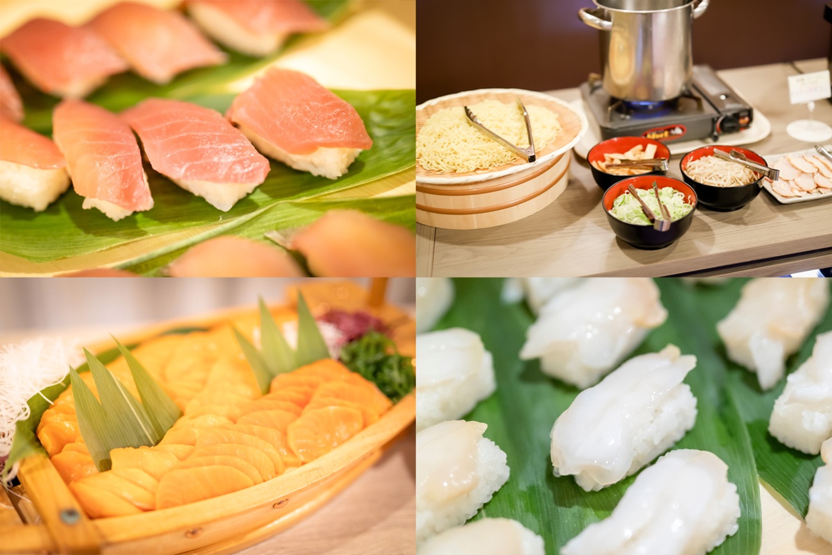 現做的熱騰騰料理一應俱全,壽司和生魚片也能隨意享用,甚至還有自助式拉麵。甜點和水果也不缺,讓人一直享受到最後。酒精飲品需另付費,但軟性飲料和咖啡則是無限暢飲。