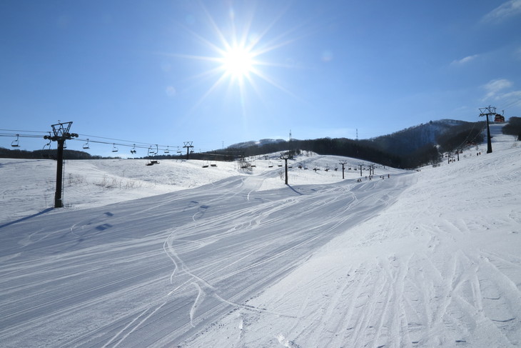 Its middle stretch consists of two stages that are great for carving. At the base you find a restaurant that’s perfect for taking a break. At Christmas and on New Year’s Eve, the resort holds Taimatsu Kasso (torchlight skiing) and a fireworks festival in this area.