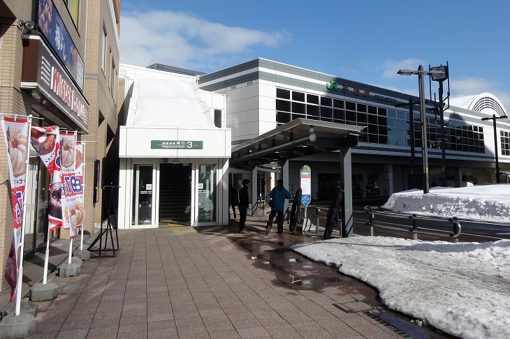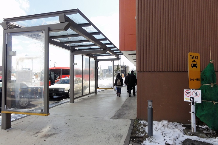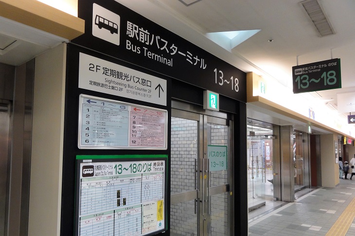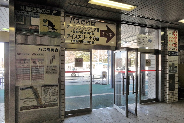 Once you're out of the north exit, go outside through the door in front of you. There will be a few signs about bus terminals around the exit but they are for other routes. There is no sign for the bus to Moiwayama Ski Area, so ignore these signs and go outside anyway.
