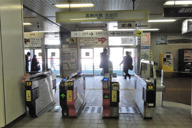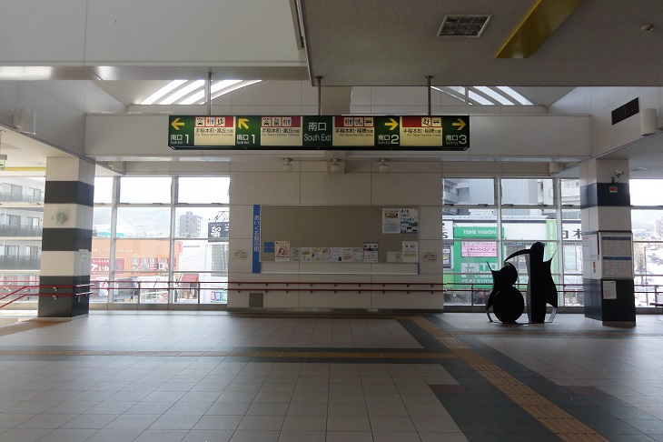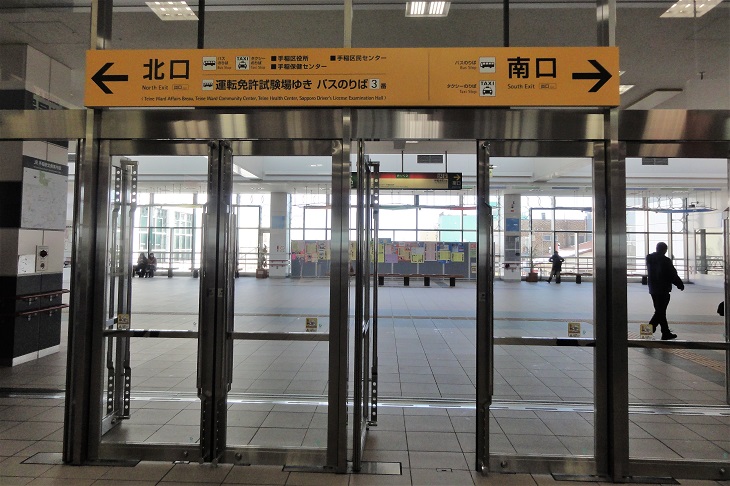 JR Teine Station's ticket gate is on the second floor. After passing through the gate, walk by the side of the station's waiting room and straight to the door in the concourse. Once you're out the door there are ways to the south and north exit, so walk right to the south exit.