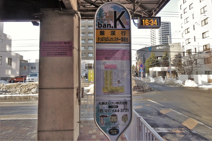 There are many local buses departing from this terminal so you'll see many signs, but go to platform 4 for the Sapporo Bankei Ski Area. You'll see the bus stop sign as shown in the photo.