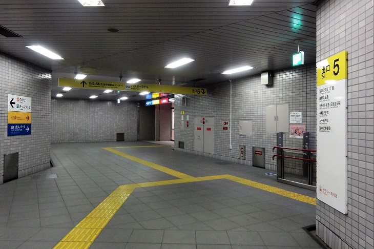 At Miyanosawa Station, you'll need to find exit 5. Go left out of the ticket gate, then turn right a short distance later and go up the escalator. Continue walking through the long underground passage, and you'll see exit 5 to your right. From there, go up to the street level. Be careful: There is a local bus terminal beyond exit 5, and the signs around the station exits and underground passages show ways to bus stops that are not at exit 5. The free shuttle bus to SNOW CRUISE ONZE departs from and arrives at a spot that is away from the bus terminal, and there are no signs or directions to it in the underground passages. IGNORE the signs for the bus terminal and just head straight to exit 5.