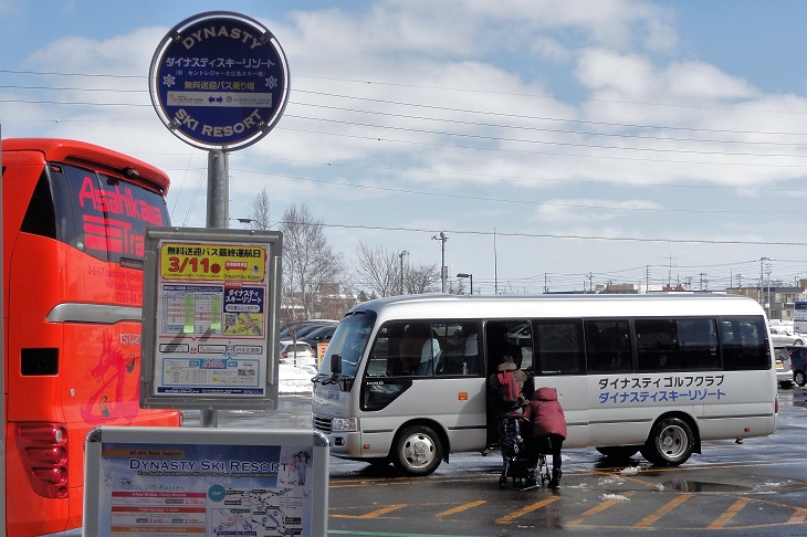 To get to Dynasty Ski Resort, use the free shuttle bus from the Mitsui Outlet Park Sapporo Kitahiroshima mall. It takes about 10 minutes. To get to Mitsui Outlet Park Sapporo Kitahiroshima, board a local bus from JR Sapporo Station or JR Kitahiroshima Station, Fukuzumi Station on the Sapporo Municipal Subway Toho Line, or Oyachi Station on the subway Tozai Line. Some of the airport buses to and from New Chitose Airport also stop there. It takes about 30 minutes from the airport. The bus comes approximately every 15 minutes during the day, making it a convenient choice en route to and from the airport.