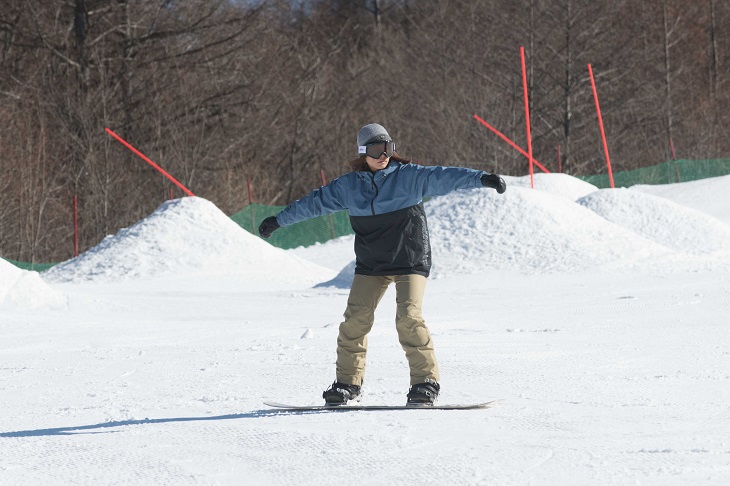 Once you can perform linked turns, try snowboarding on easy runs such as gentle slopes for beginners and courses through tree-filled areas. If you snowboard over longer distances, you will quickly become familiar with snowboarding and improve your skills. There are also artificial wave runs that even beginners can have fun on. As you gain skill and confidence, try your hand on different runs and experience the exhilaration of snowboarding!