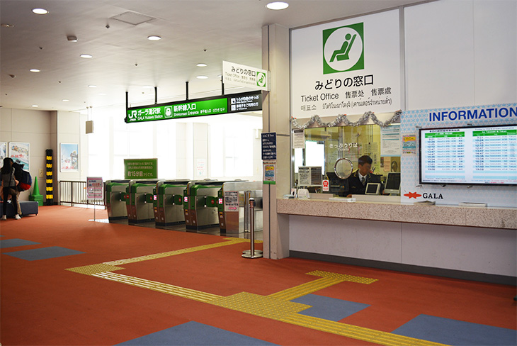 You can reach Iwappara Ski Resort, Joetsu Kokusai Ski Resort and Maiko Snow Resort by shuttle bus from the east exit of Echigo Yuzawa station. There is also a shuttle bus to Naeba Ski Resort from the east exit, but this is for guests of the resort-owned hotel only. For GALA Yuzawa Snow Resort, there is a shuttle bus from the west exit of Echigo Yuzawa station. But if you're coming from Tokyo, the shinkansen would be more convenient because the ski resort is directly linked to shinkansen's GALA Yuzawa station.
