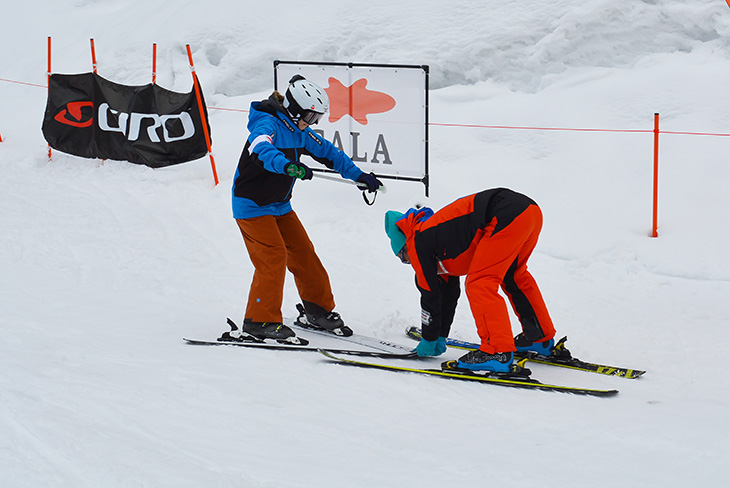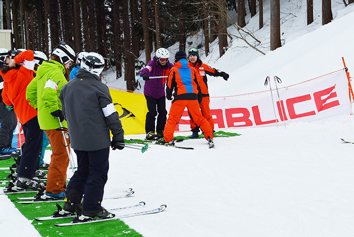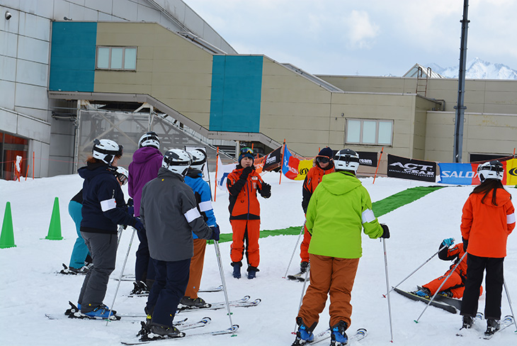 There'll be more than one instructor for each group lesson. They will explain all the basics, from each piece of equipment to how to put on and take off your skis. All students will wear helmets. The helmet has a speaker inside and the interpreter's voice from the microphone will be transmitted to the speaker.