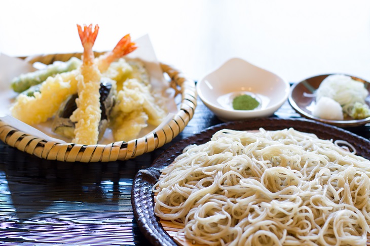 當地食材製作的關東煮、蕎麥麵和醃菜等。