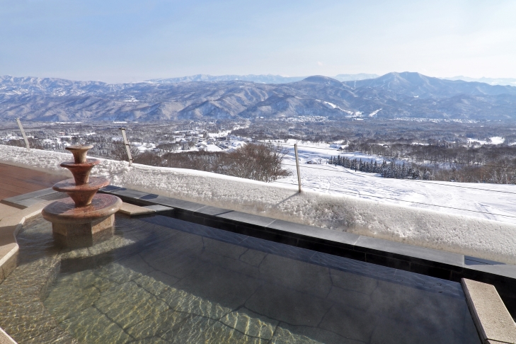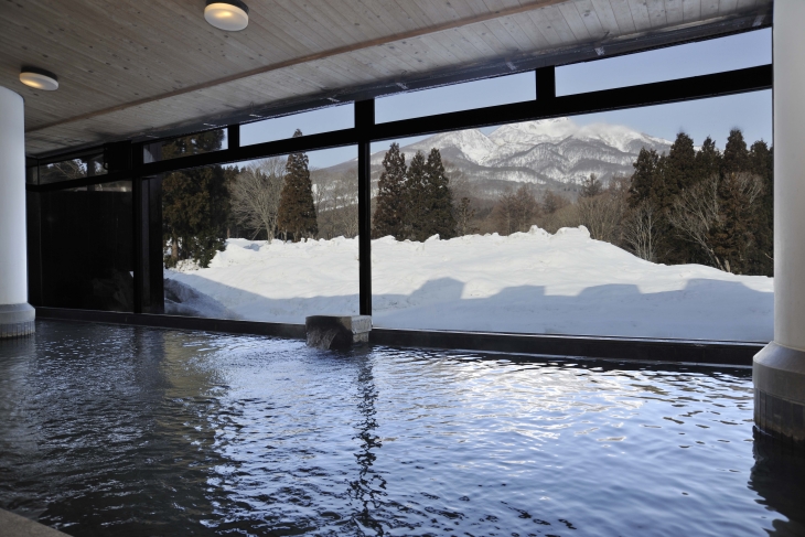 This hot spring has unusual, black water with dark mud, drawn from Minami Jigokudani valley half way up Mt. Myoko. It provides hot spring water to areas around Ikenotaira Onsen Ski Resort. The facilities offer different types of hot spring water. For example, Hotel Alpen Blick, which is right next to the piste, removes the dark mud by sedimentation and has clear hot water with no odor. Meanwhile, Landmark Myoko Kogen Onsen Cafe, which has a hot spring and an amusement facility, adds extra dark mud in the hot water to increase the amount of effective substances. (Photo: Landmark Myoko Kogen Onsen Cafe)