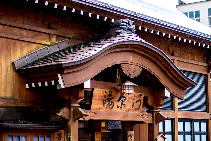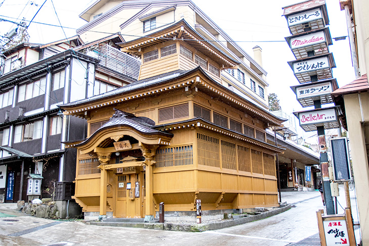 Oyu is at the center of the onsen street and is a quintessential symbol of Nozawa Onsen. Its architecture is beautiful, conveying the Edo Era atmosphere to today. The simple sulphur spring is said to be effective for digestive ailments, rheumatoid arthritis, women's illnesses, and paralysis. It is also the only public bath in Nozawa Onsen with a foot bath.