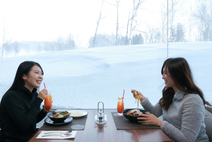 Restaurant Atrium is located in front of the entrance on the first floor. This restaurant serves cuisine made with carefully selected seasonal ingredients from Hokkaido as well as a panoramic view of the snowy landscape outside. Read on to discover some of their lunch and dinner fare.