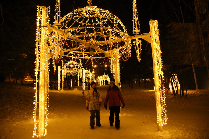 The après-ski highlight is Kamori Wonder Lights, which is one of Japan’s largest projection mapping shows. With amazing images projected onto the 50-meter-wide glass screen, this show depicts fascinating stories about Ainu and the nature of Hokkaido. The Stardust Avenue winter illumination adorns the area in front of the hotel with archways and animals made from some 250,000 lights. Why not take a walk on the snow, bathed in the light of the illuminations?